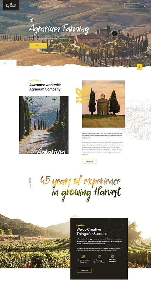 Agrarium WordPress Theme includes more than 100 wonderful elements for building different creative pages and blocks for your awesome website.